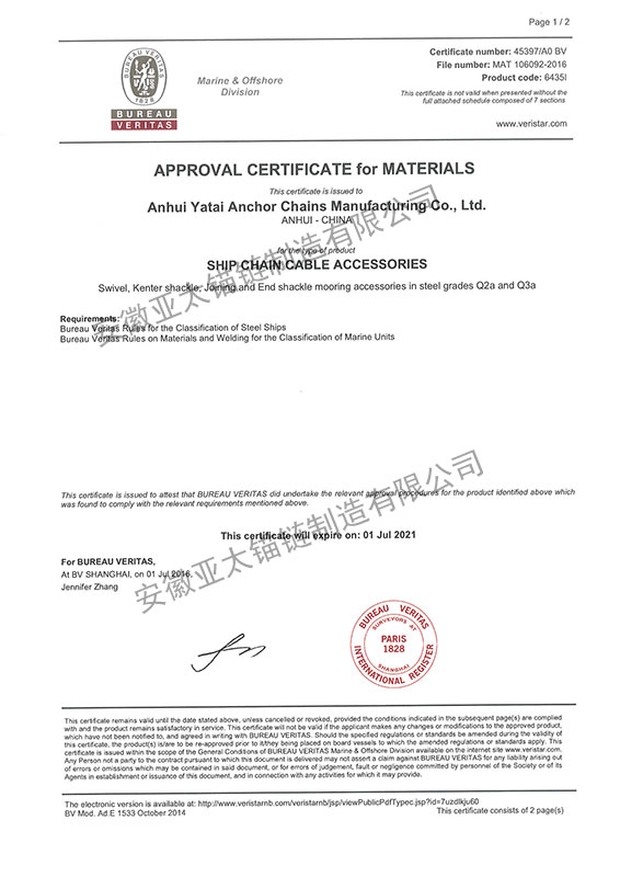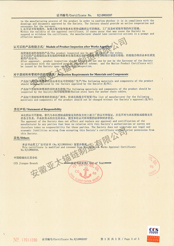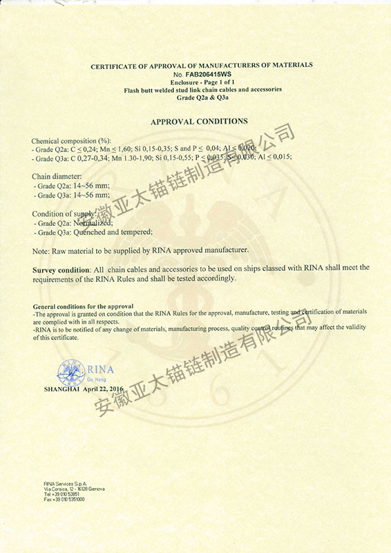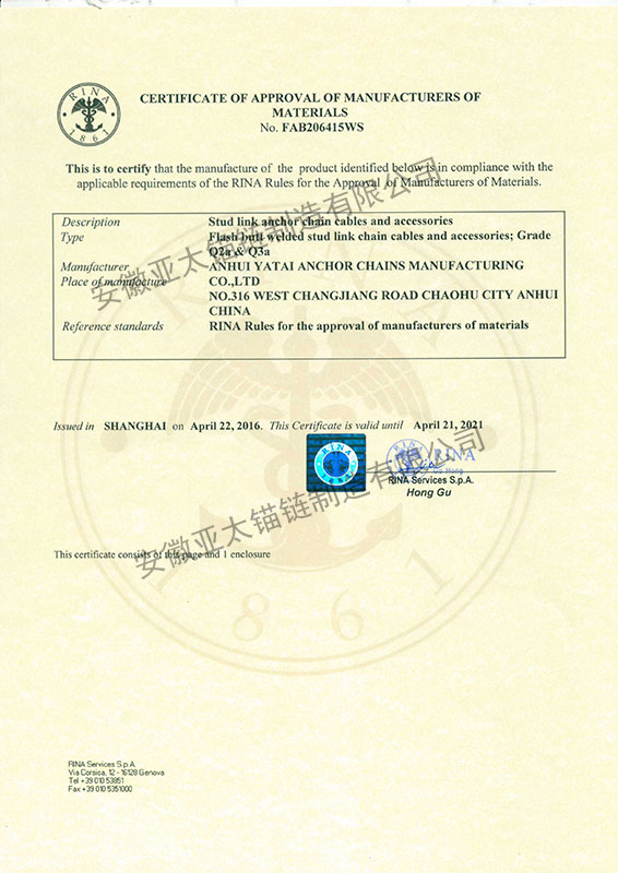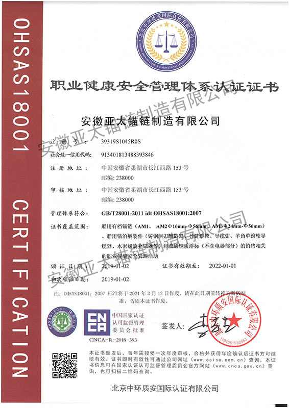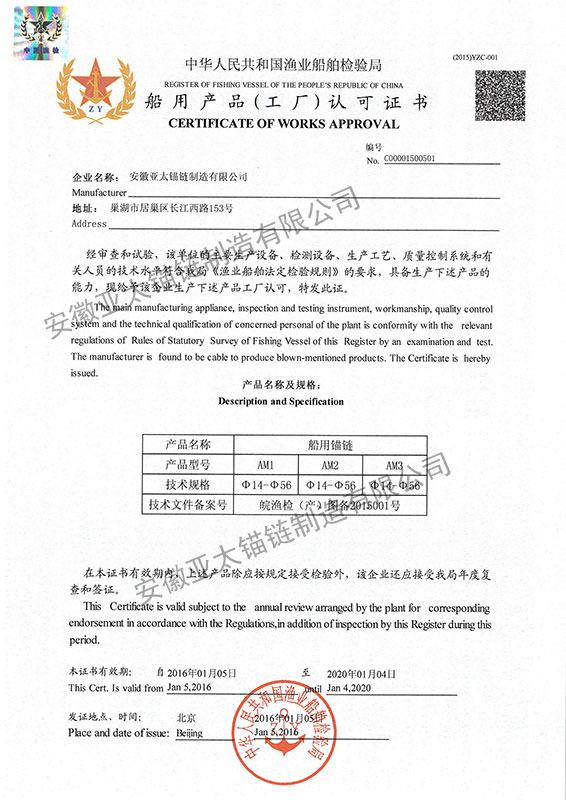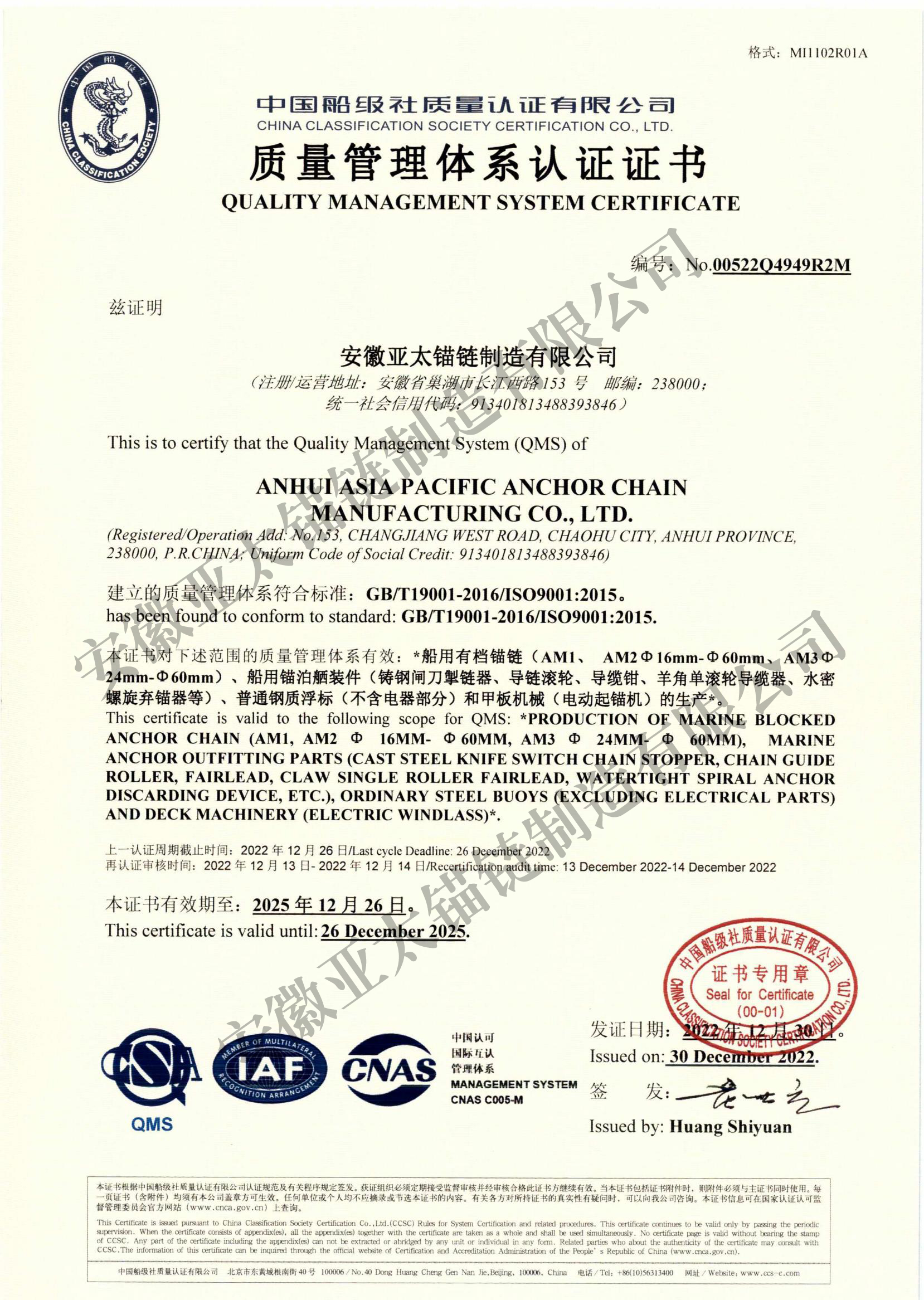 安徽亞太錨鏈制造有限公司是國(guó)家高新技術(shù)企業(yè),也是國(guó)家GB/T 549-2017《電焊錨鏈》標(biāo)準(zhǔn)的起草和制定單位之一。公司旗下設(shè)有錨鏈分廠、浮標(biāo)分廠、舾裝件分廠等多個(gè)分廠。公司專業(yè)從事φ12.5mm-φ107mm二、三級(jí)船用錨鏈、浮標(biāo)錨鏈、錨鏈附件,錨、船舶曬裝產(chǎn)品、航標(biāo)、系船浮、船型標(biāo)、多種規(guī)格海洋監(jiān)測(cè)浮標(biāo)及航標(biāo)燈等產(chǎn)品的生產(chǎn)、安裝和服務(wù)。目前公司的產(chǎn)品銷往全國(guó)各地船廠、碼頭、航標(biāo)處、航道局、海洋局,并已走上國(guó)際市場(chǎng),如東南亞、中東、歐美等國(guó)家。