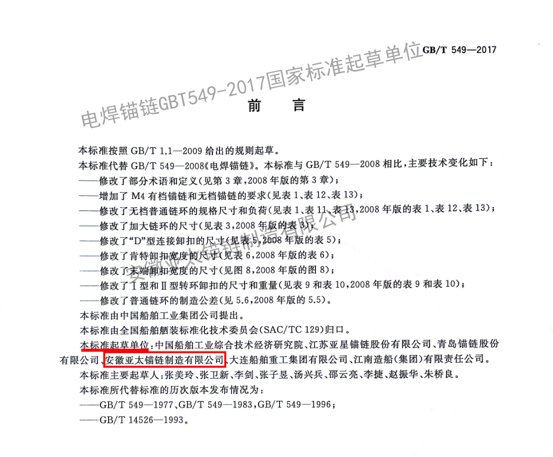 電焊錨鏈GBT549-2017國(guó)家標(biāo)準(zhǔn)起草單位